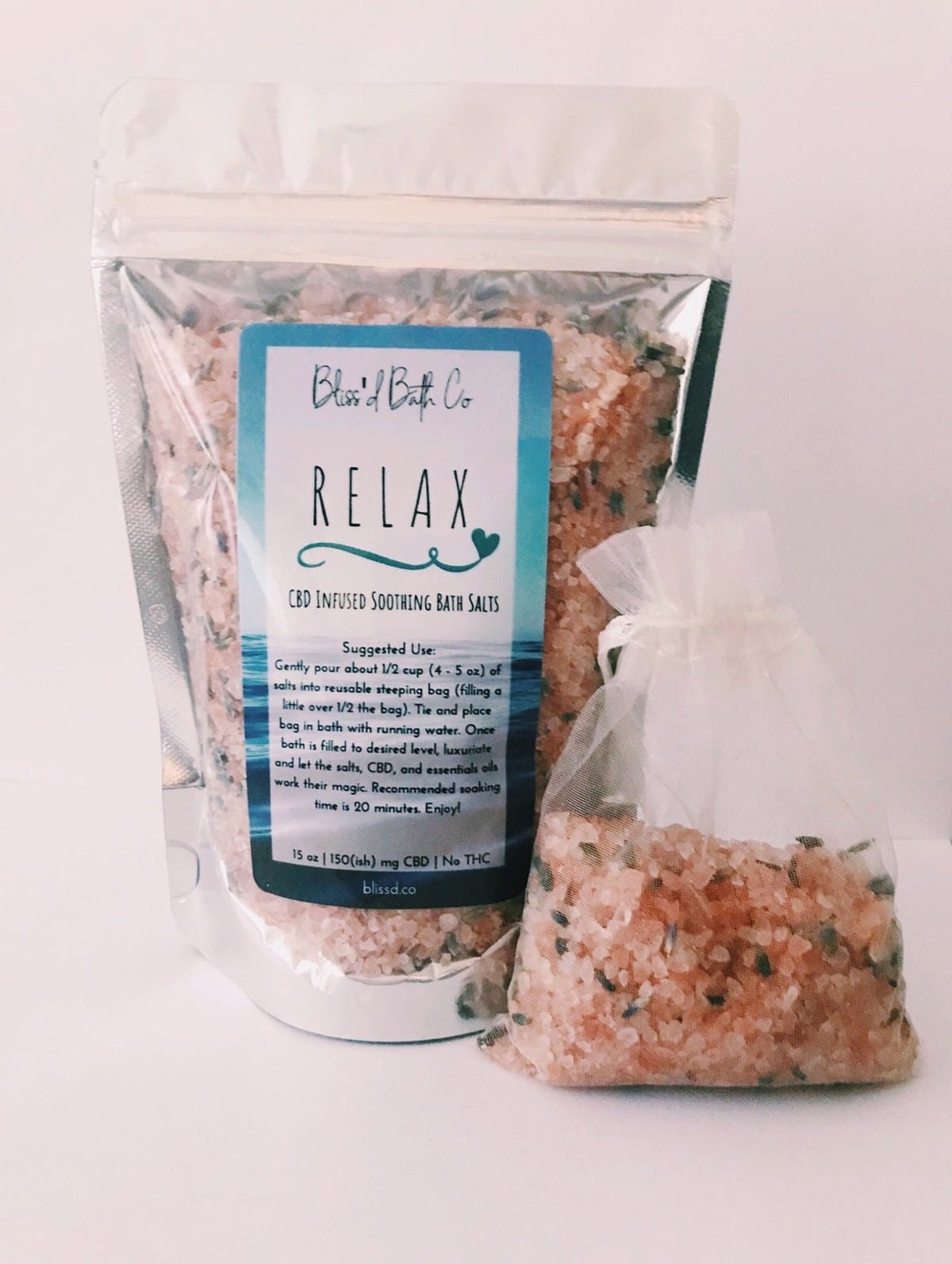 Blissโ€™d RELAX CBD Infused Bath Salts are filled with the essentials for any great bath-Pink Himalayan, Dead Sea, and Epsom salts are enhanced with uplifting lavender and eucalyptus essential oils to soothe any Mamaโ€™s body, mind, and soul. 150 mg of full-spectrum CBD oil take these salts โ€“ and her bath โ€“ to the next level. These salts are infused with CBD and the recommended dosage starts her slow. Thankfully, her bath will be no muss, no fuss. Blissโ€™d Bath Co includes a steeping bag with all of their salts.