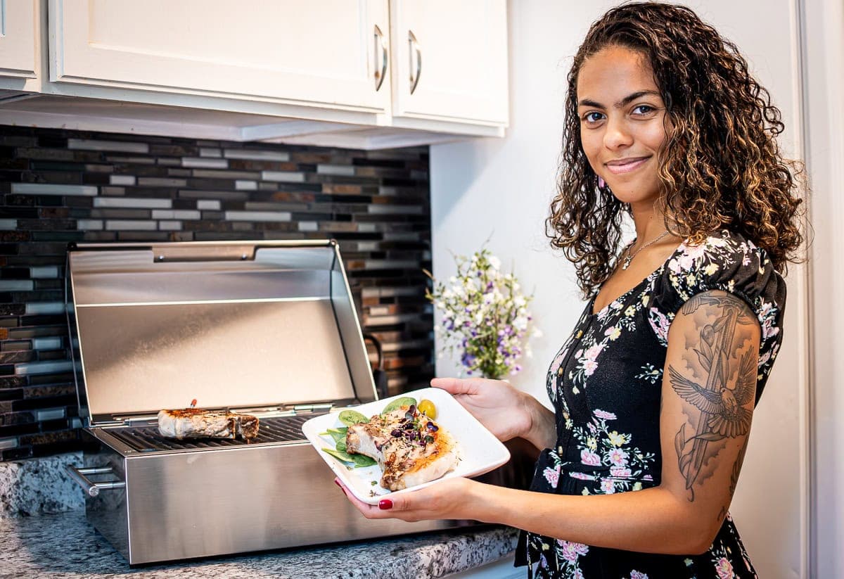 With the ability to heat up to 550ยฐF+, you still get that crave-worthy sear and smoky flavor youโ€™d expect from a backyard grill, but without stepping foot outsideโ€”or breaking any fire codes. Balcony, kitchen, or even a small patio, this grill was designed to fit your lifestyle.