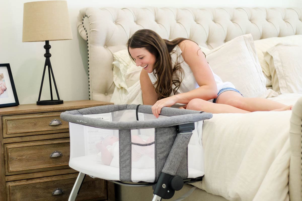 If you want a co-sleeping experience without having your child physically in the bed with you, this bassinet quickly and easily turns into a bedside sleeper in seconds. By unzipping the side panel and securing the Bedside Me Dreamer to your bed, you can have your baby directly next to you. This mode gives you easy access to your newborn without ever having to leave your bed. You can nurse them, comfort them, and regularly check on them throughout the night. The 6-position height adjustment will raise the bedside sleeper to the exact height you require to be level with your mattress.