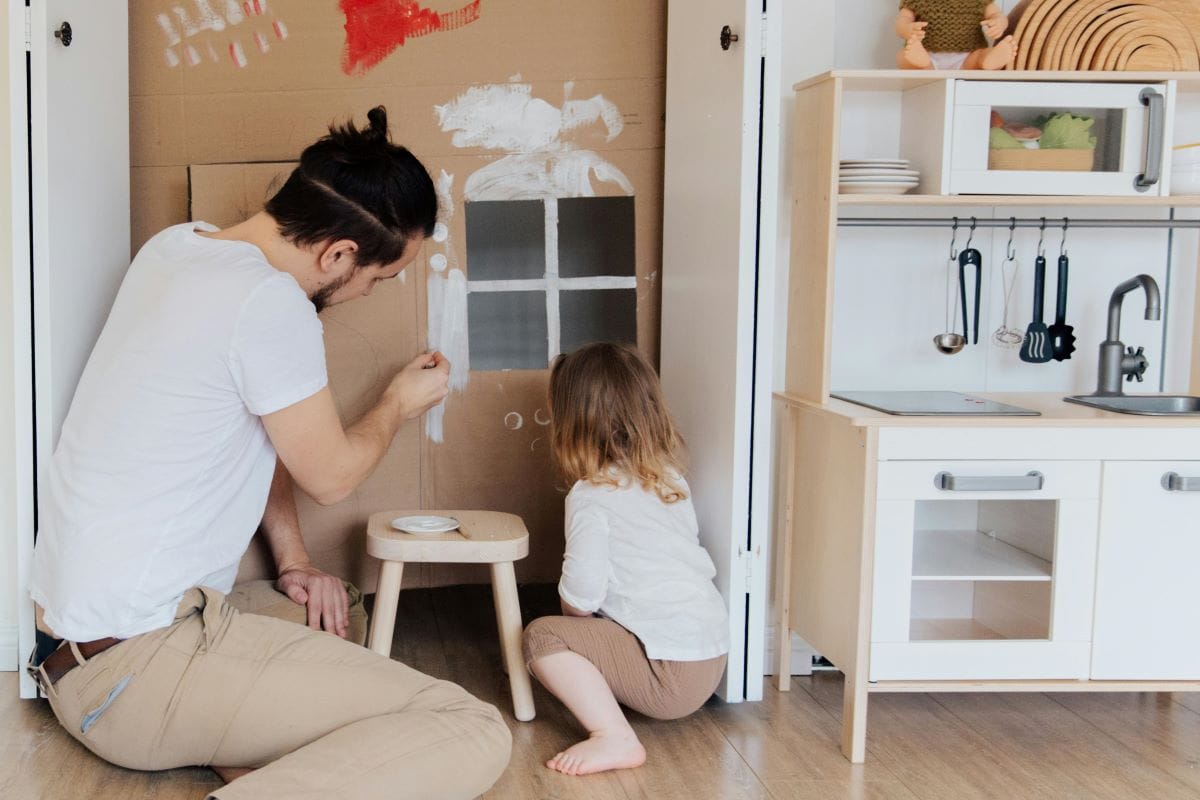 Q: How can I involve my children in making a cardboard house?