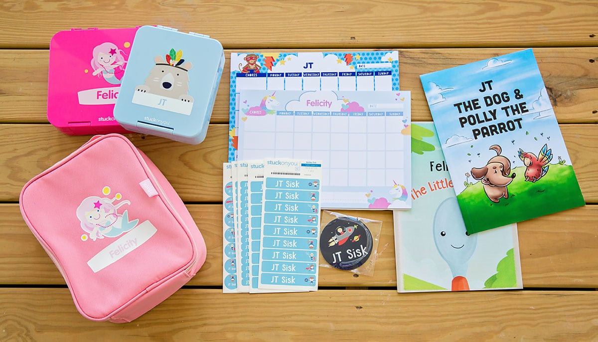 This year, we picked up a few additional pieces that weโ€™re hoping will make the transition back into school a little easier, including a new lunch box, bento boxes (available in large and mini) and chore charts that can be used for tracking actual chores or homework completion โ€“ all personalized with our kids favorite characters. Of course, we couldnโ€™t resist Stuck On Youโ€™s super cute personalized books as well.